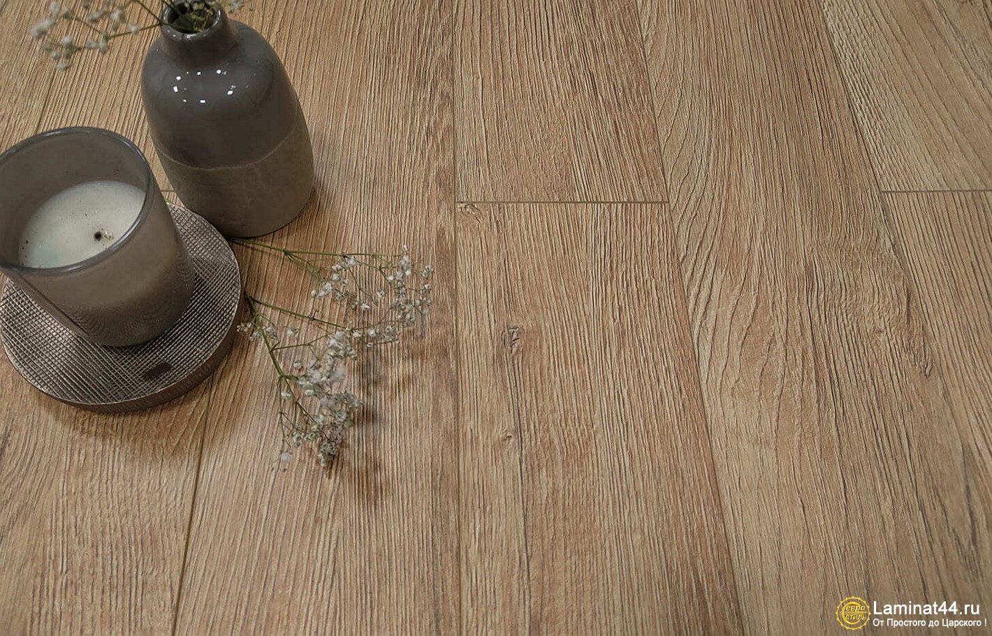 имитирует благородную ореховую древесину. Тиснение поверхности в регистр на 100% передаёт реалистичную структуру натурального паркета из ореха. А сатиновый полуматовый блеск не оставляет никакого сомнения, что перед нами "Его Величество" - Орех. Насыщенные теплые цвета,